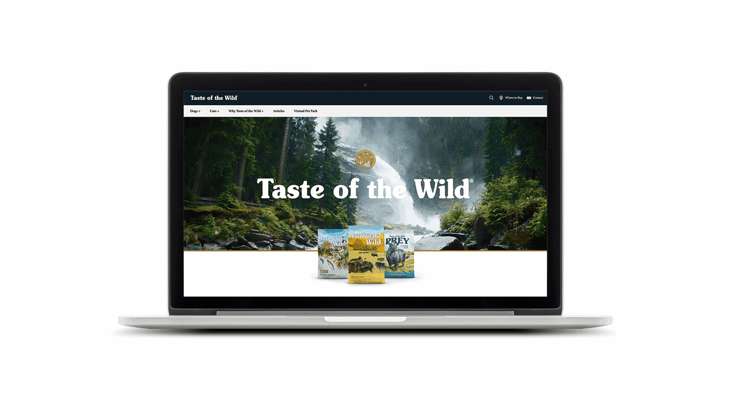 Packaging is a key physical manifestation of the brand promise. It's often the customer's first tangible interaction with the product and must visually and physically deliver on the brand's commitment. We commissioned artwork for the Taste of the Wild and Ancient Grains packaging that depicts animals in their ancestral habitats, creating an engaging and recognizable visual style. The brand promise is further represented through both the tagline — “A modern diet, inspired by nature” — and unique product features positioned through the lens of being close to nature. Pasture-raised and cage-free proteins, species-specific probiotics and ancient grains reinforce the "nature intended" aspect while providing benefits that support pet health and vitality.